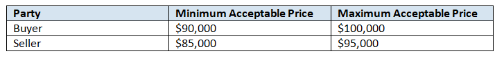 Here, the ZOPA lies between $90,000 and $95,000.