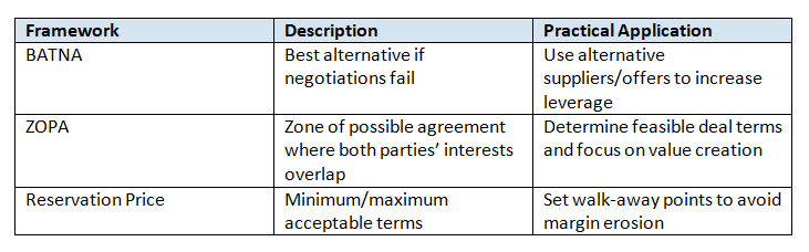 Preparation is the cornerstone of margin-enhancing negotiations. Two foundational frameworks are BATNA (Best Alternative to a Negotiated Agreement) and ZOPA (Zone of Possible Agreement). Mastery of these concepts empowers negotiators to set realistic targets and avoid unfavorable concessions.