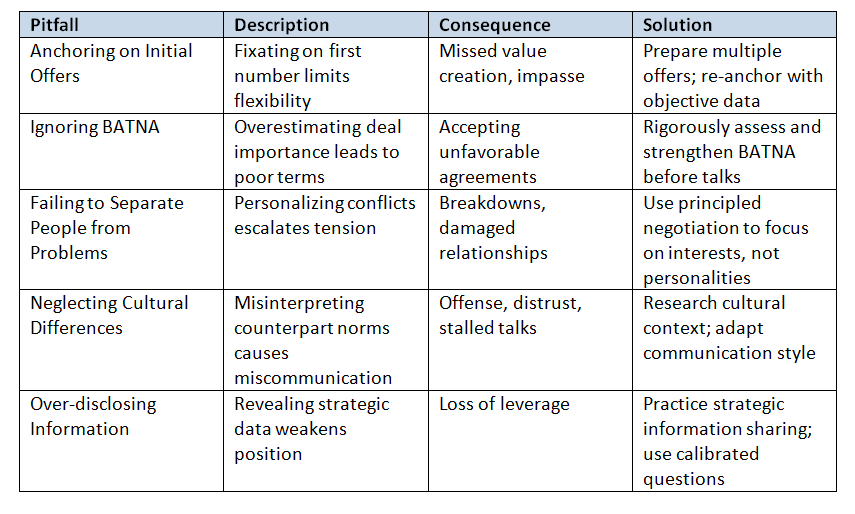 Even experienced negotiators fall prey to predictable mistakes that jeopardize deals.