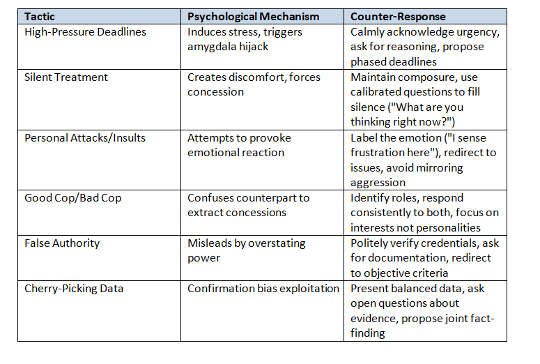 Negotiators frequently encounter manipulative and aggressive tactics designed to destabilize or coerce. Recognizing these and responding effectively is crucial.