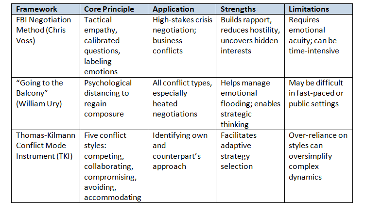 The complexity of emotional negotiations has inspired several frameworks to help negotiators maintain control and steer discussions productively. Below are three essential models, each with distinct approaches and advantages. Understanding their differences equips negotiators to select and blend strategies according to context.