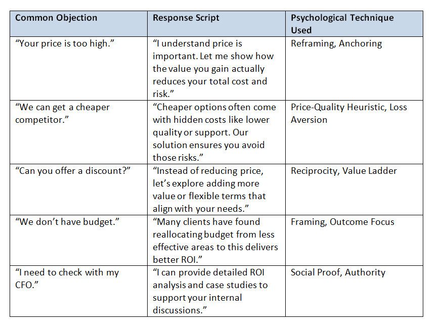 · Objection Handling: Exact Word-for-Word Responses