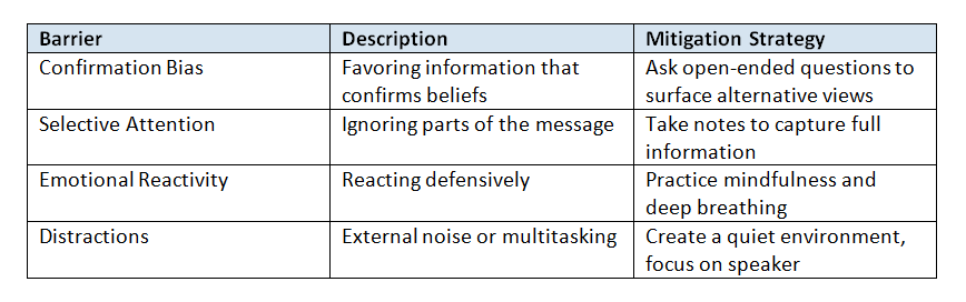 Proactively addressing these barriers strengthens negotiation listening outcomes.