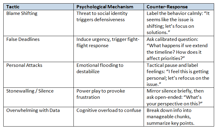 Difficult counterparts often deploy psychological tactics designed to gain leverage or provoke emotional reactions. Understanding the intent allows for precise countermeasures.