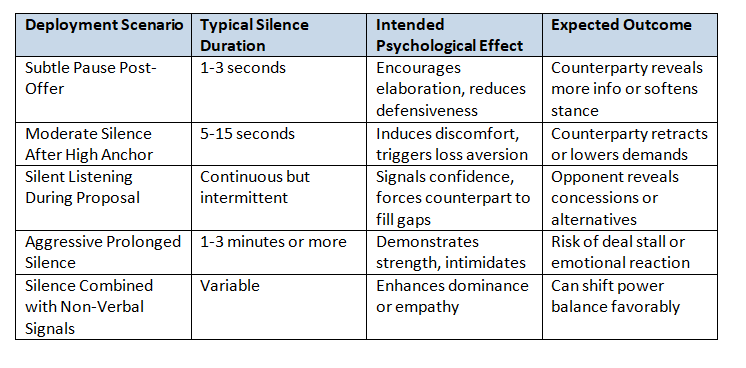 Understanding these variations allows negotiators to calibrate silence strategically rather than applying it uniformly.